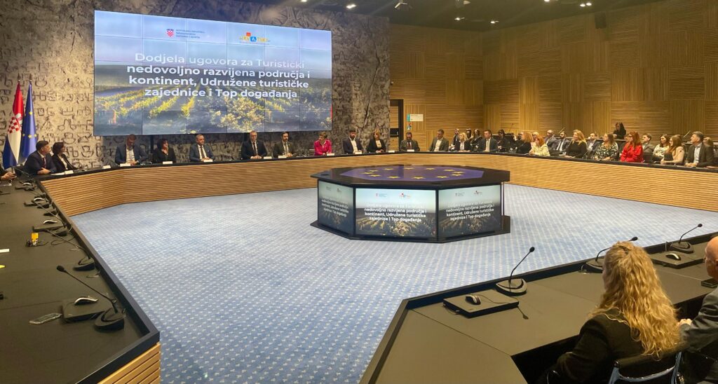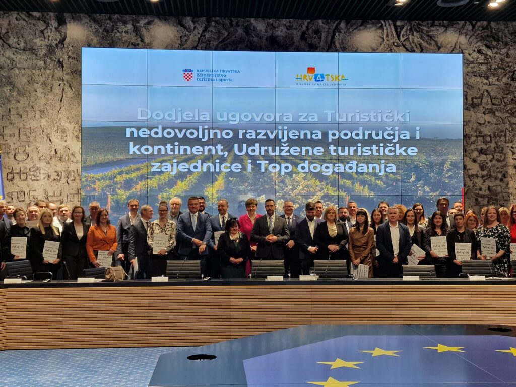El Ministro de Turismo y Deportes Tonči Glavina y el Director de la Oficina de Turismo de Croacia Kristjan Staničić presentaron hoy los contratos para proyectos de oficinas de turismo regionales en el área turística subdesarrollada y en el continente , así como para proyectos de oficinas de turismo asociadas en el año 2025 . Se trata de fondos asignados en base a una decisión del Consejo de Turismo del CNTB, es decir, en base a licitaciones públicas a través de las cuales a las oficinas de turismo regionales de zonas turísticas subdesarrolladas y del continente se les asignaron 4,1 millones de euros para un total de 39 proyectos , mientras que a las oficinas de turismo asociadas se les asignaron 3,2 millones de euros para 108 proyectos .